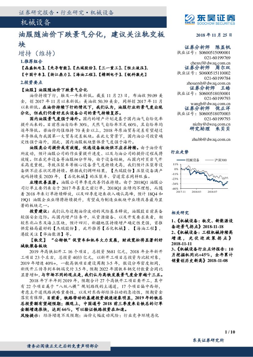 东吴证券:机械设备:油服随油价下跌景气分化,建议关注轨交板块.pdf