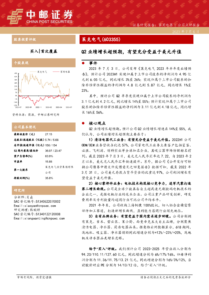 中邮证券:莱克电气(603355)-Q2业绩增长超预期,有望充分受益于美元升值.pdf
