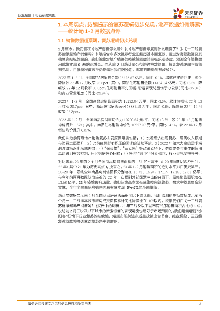 天风证券:房地产:统计局1-2月数据点评-持续提示的复苏逻辑初步兑现,地产数据如何解读?.pdf