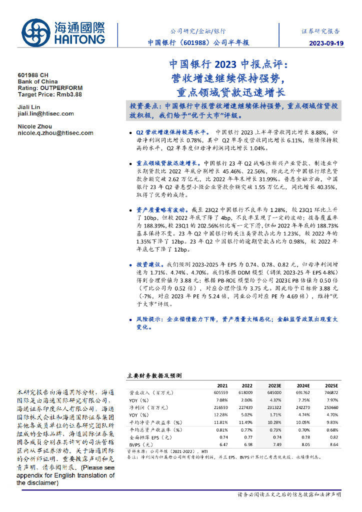 海通国际:中国银行2023中报点评:营收增速继续保持强势,重点领域贷款迅速增长.pdf