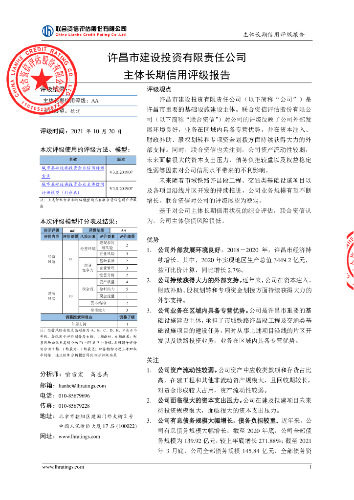 联合资信:许昌市建设投资有限责任公司主体信用评级报告.pdf