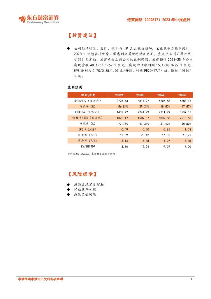 东方财富证券:恺英网络(002517)-2023年中报点评:《石器时代》定档10月,新产品周期开启.pdf