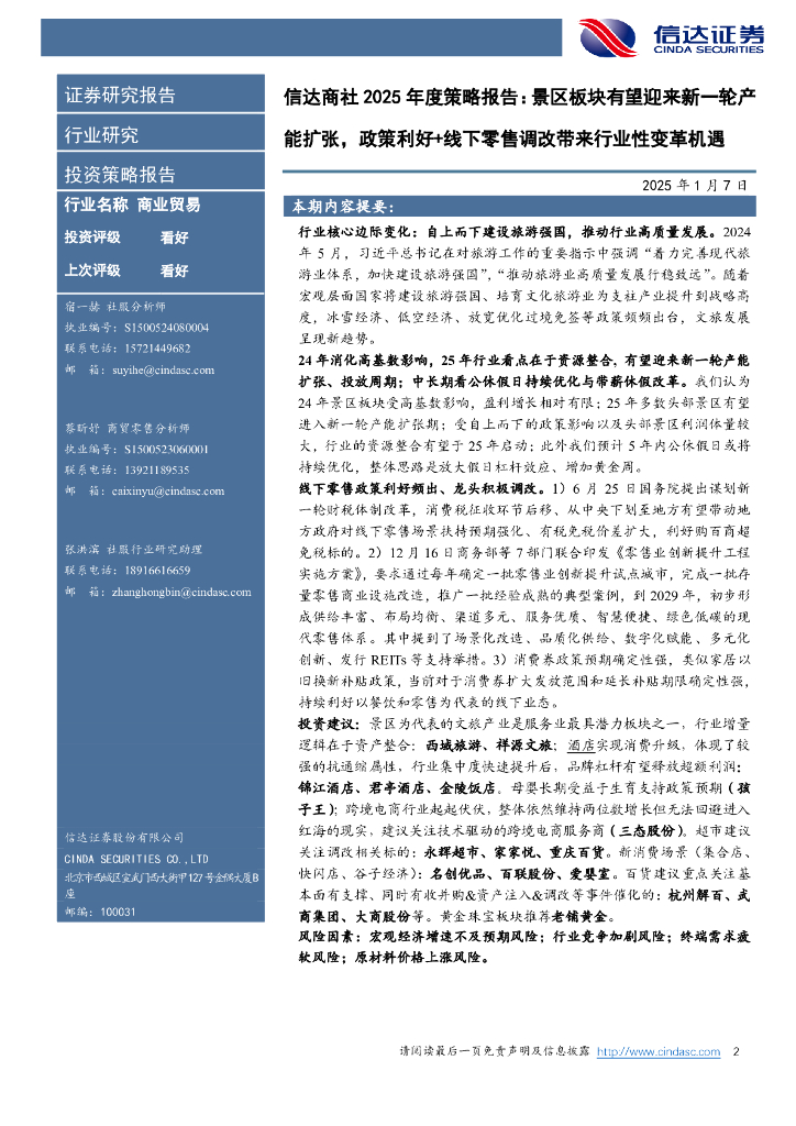 信达证券:信达商社2025年度策略报告:景区板块有望迎来新一轮产能扩张,政策利好+线下零售调改带来行业性变革机遇.pdf