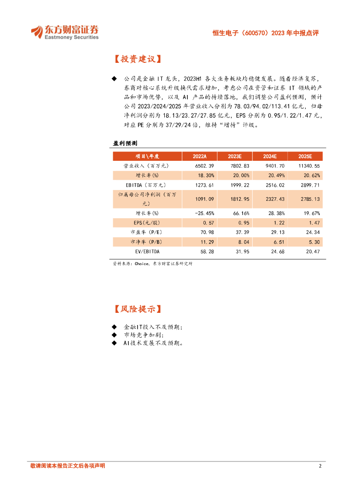 东方财富证券:恒生电子(600570)-2023年中报点评:业务稳健发展,信创与AI应用加速落地.pdf