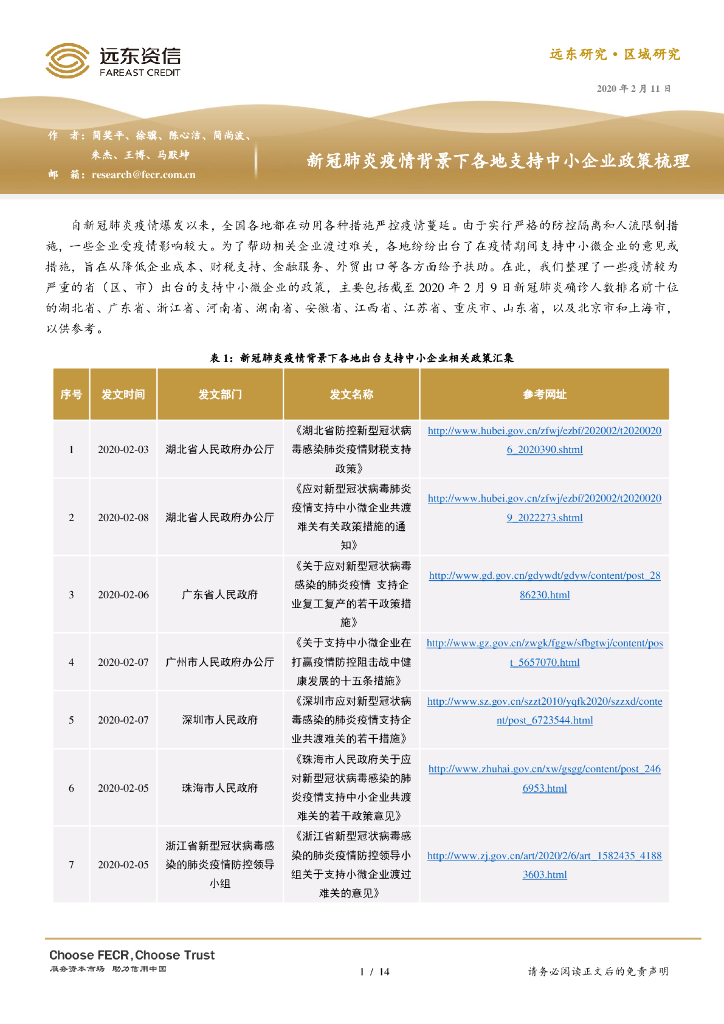 远东资信:新冠肺炎疫情背景下各地支持中小企业政策梳理.pdf