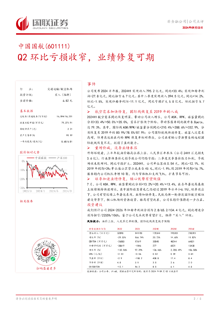 国联证券:中国国航(601111)-Q2环比亏损收窄,业绩修复可期.pdf