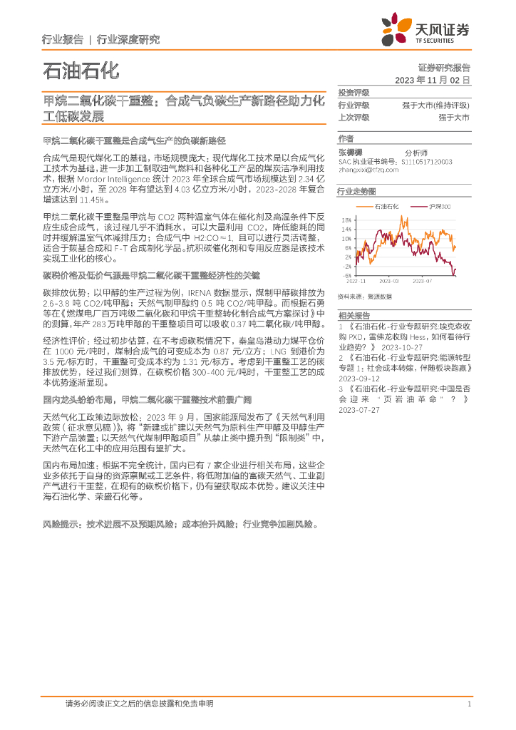 天风证券:石油石化行业深度研究:甲烷二氧化碳干重整:合成气负碳生产新路径助力化工低碳发展.pdf