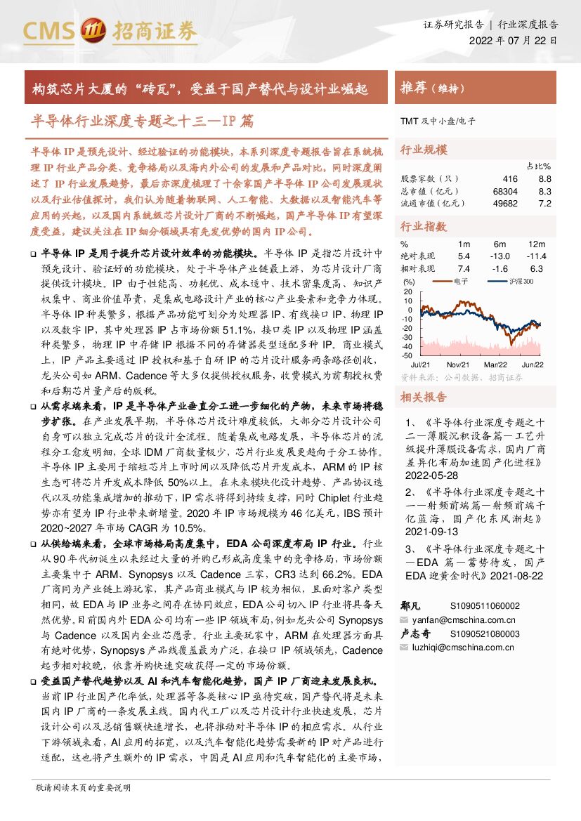 招商证券:半导体行业深度专题之十三—IP篇:构筑芯片大厦的“砖瓦”,受益于国产替代与设计业崛起.pdf