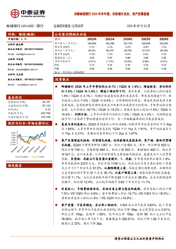 中泰证券:详解邮储银行2024年半年报:存款增长良好,资产质量稳健.pdf