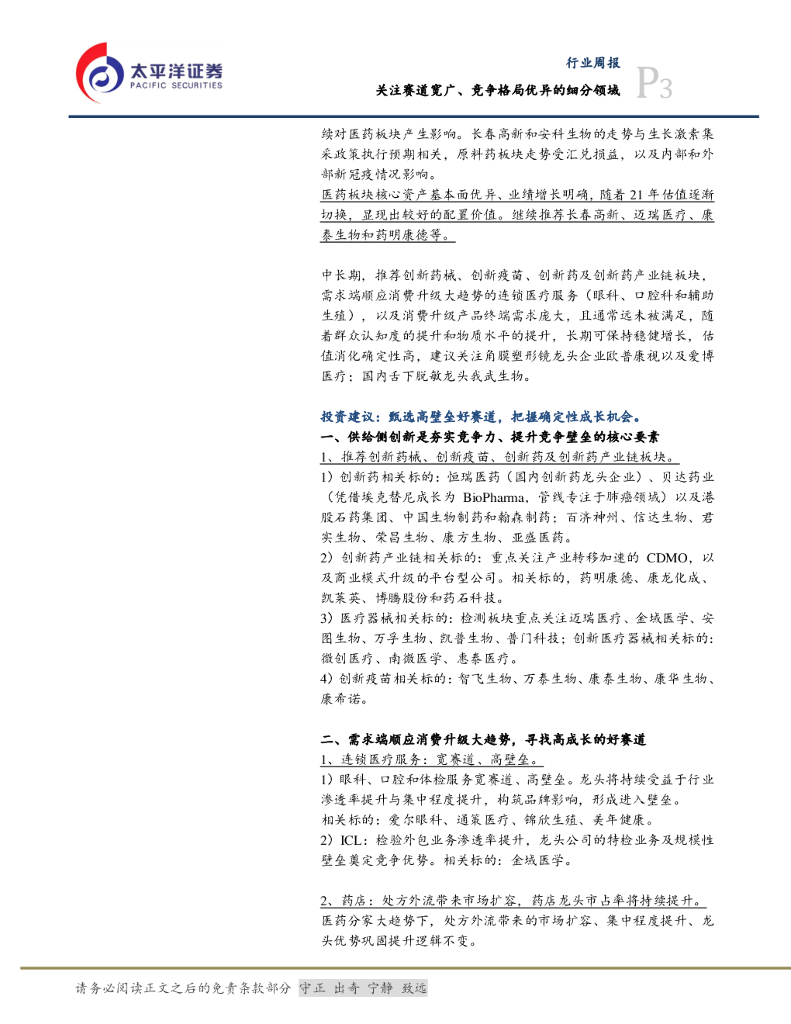 太平洋证券:医药周报:持续推荐长春高新、迈瑞医疗和康泰生物等.pdf