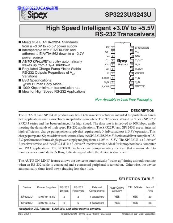 sipex SPX1585 5A Low Dropout Voltage Regulator Adjustable & Fixed Output, Fast Response 说明书
