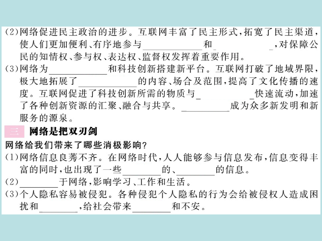 2021部编人教版八年级道德与法治上册习题讲评课件:2.1网络改变世界.ppt