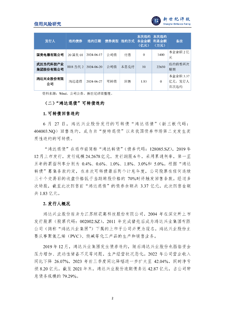 新世纪评级:可转债违约再添新例——2024年6月债券市场违约及信用风险事件概况报告.pdf