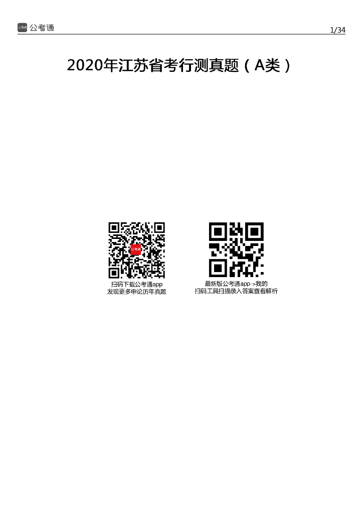 2020年江苏公务员考试行测真题及答案(A类).pdf