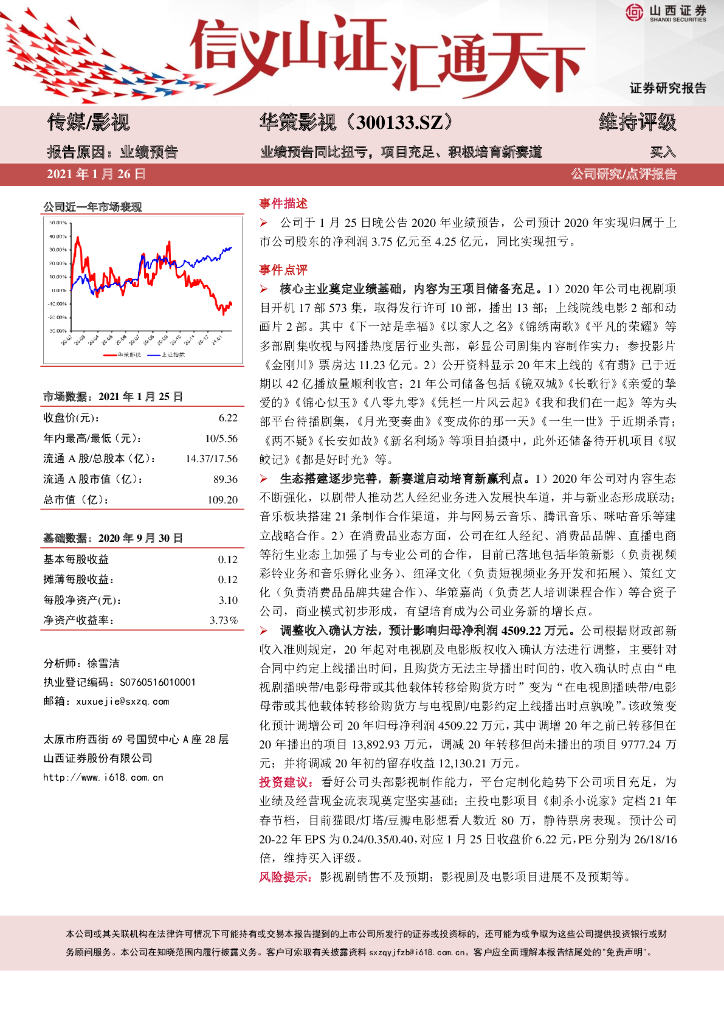 山西证券:华策影视(300133)-业绩预告同比扭亏,项目充足、积极培育新赛道.pdf