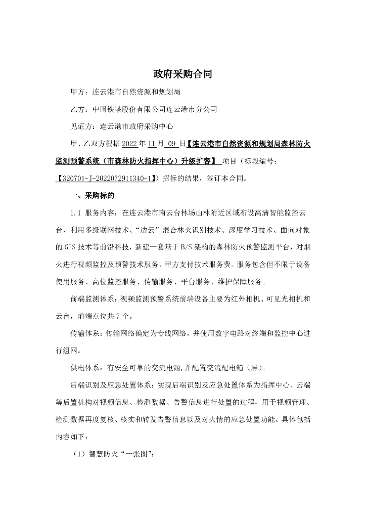连云港市自然资源和规划局森林防火监测预警系统(市森林防火指挥中心)升级扩容合同.pdf