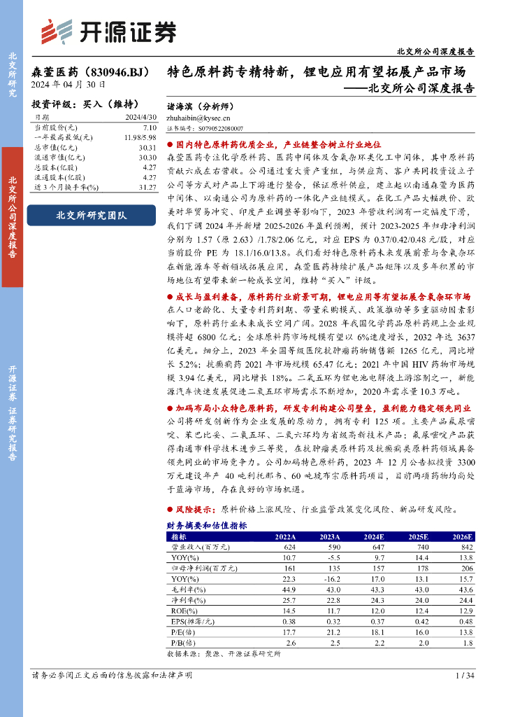 开源证券:森萱医药(830946)-北交所公司深度报告:特色原料药专精特新,锂电应用有望拓展产品市场.pdf