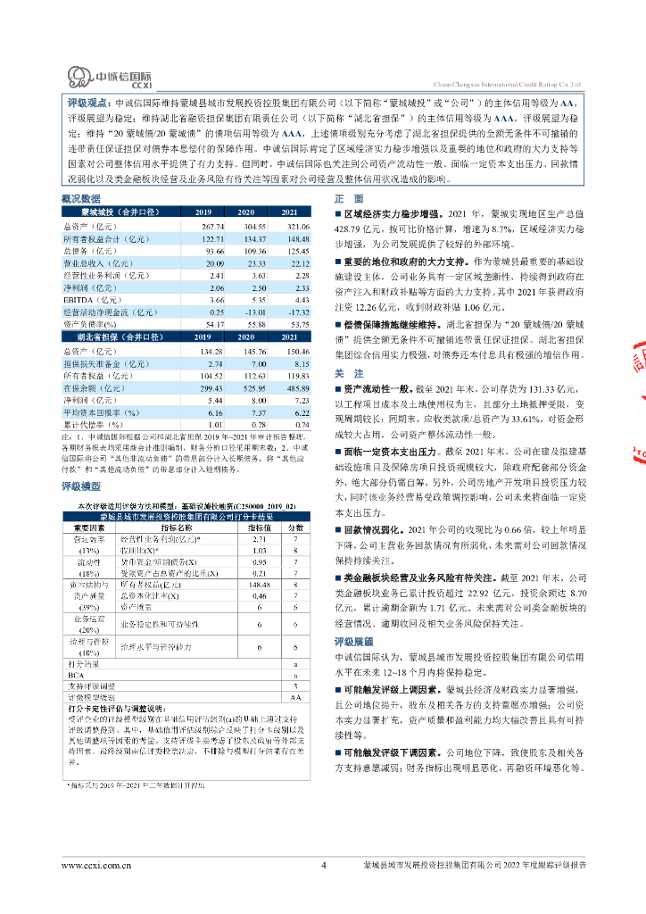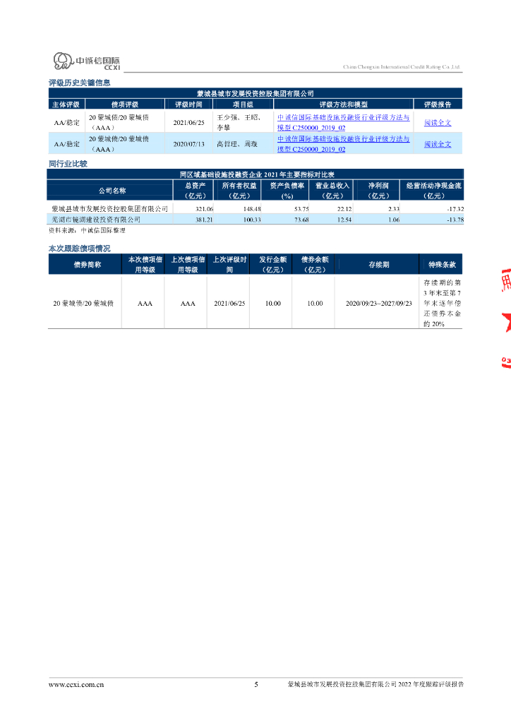 中诚信:蒙城县城市发展投资控股集团有限公司2022年度跟踪评级报告.pdf