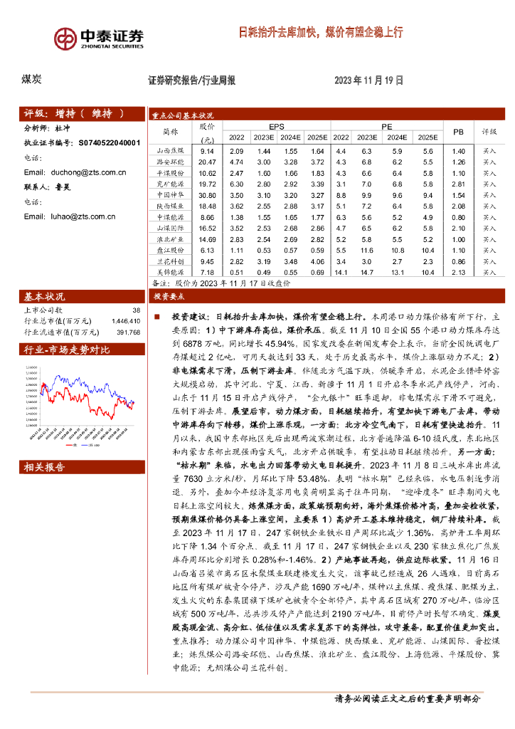 中泰证券:煤炭行业周报:日耗抬升去库加快,煤价有望企稳上行.pdf