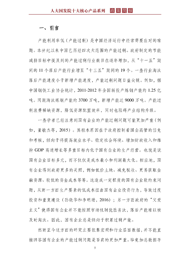 人大国发院:国发院政策简报第十六期:国有企业产能过剩的量化分析.pdf
