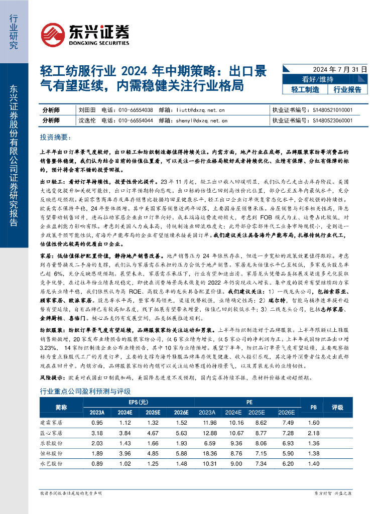 东兴证券:轻工纺服行业2024年中期策略:出口景气有望延续,内需稳健关注行业格局.pdf