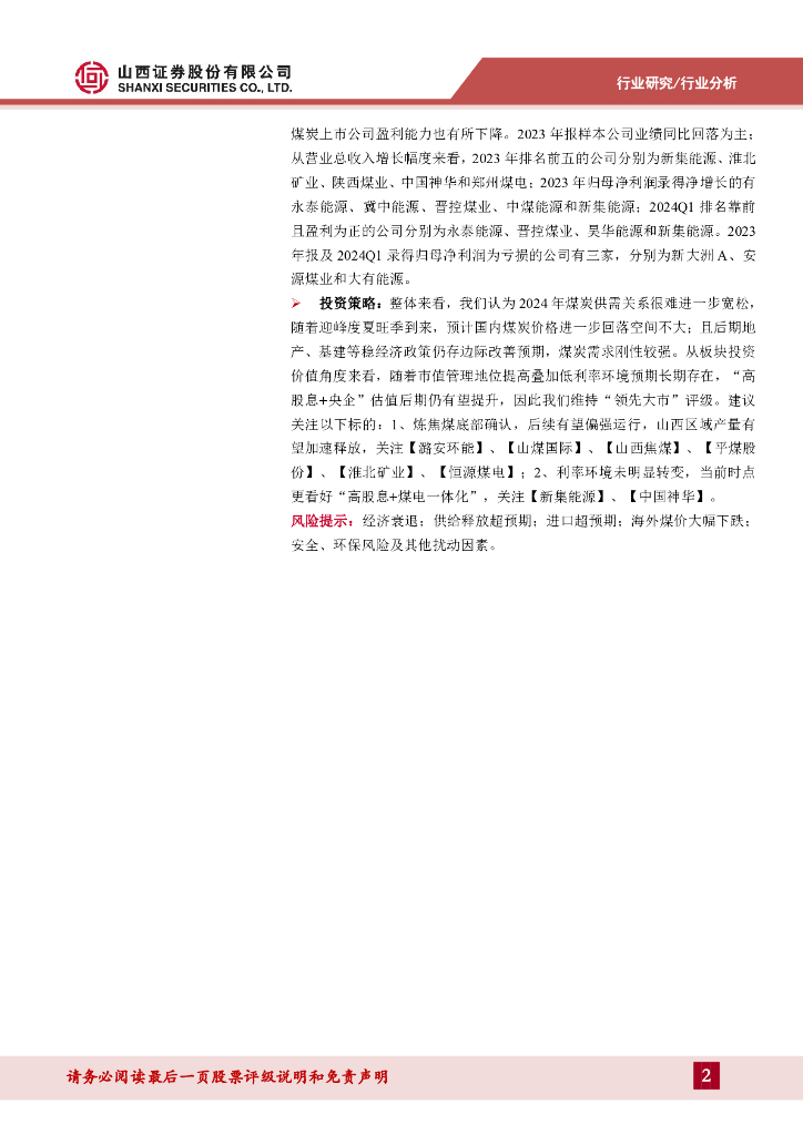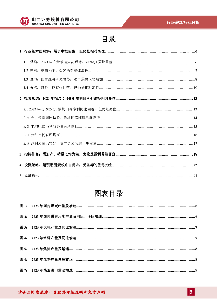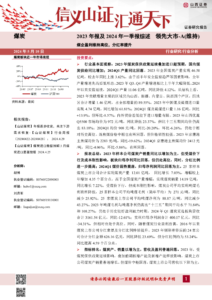 山西证券:煤炭2023年报及2024年一季报综述:煤企盈利维持高位,分红率提升.pdf