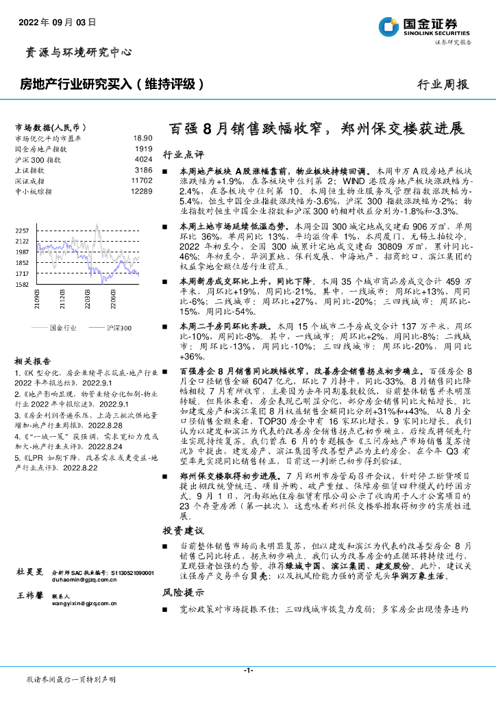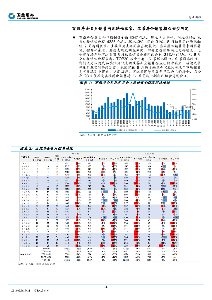 国金证券:房地产行业研究:百强8月销售跌幅收窄,郑州保交楼获进展.pdf