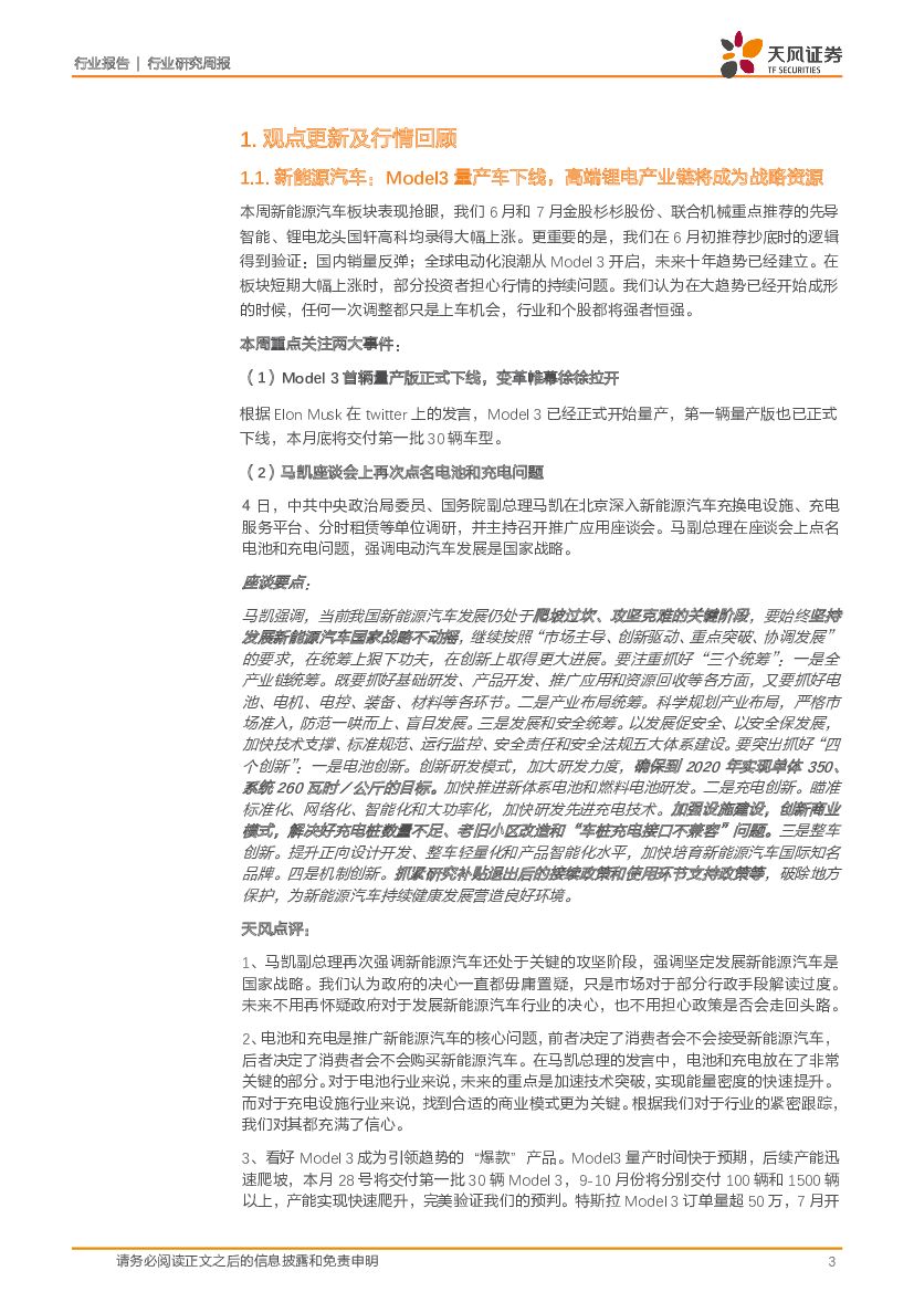 天风证券:电气设备行业研究周报:Model3量产车下线,高端锂电产业链将成为战略资源.pdf