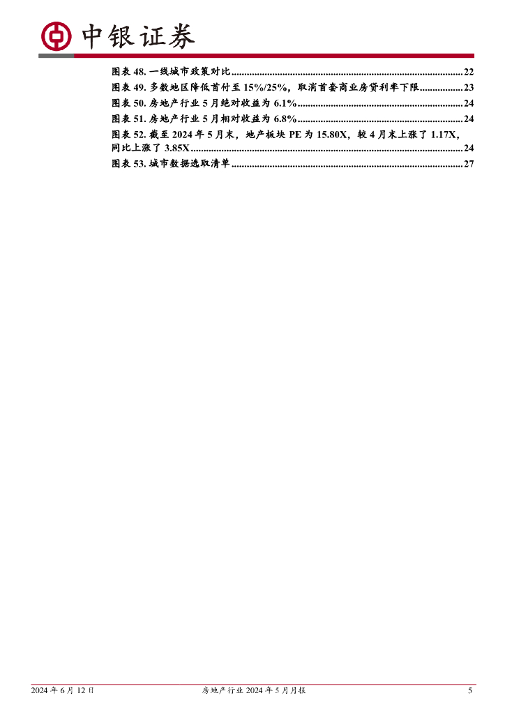 中银证券:房地产行业2024年5月月报:5月新房成交改善,二手房成交走弱;预计6月新政加持+年中冲刺,成交或有修复.pdf