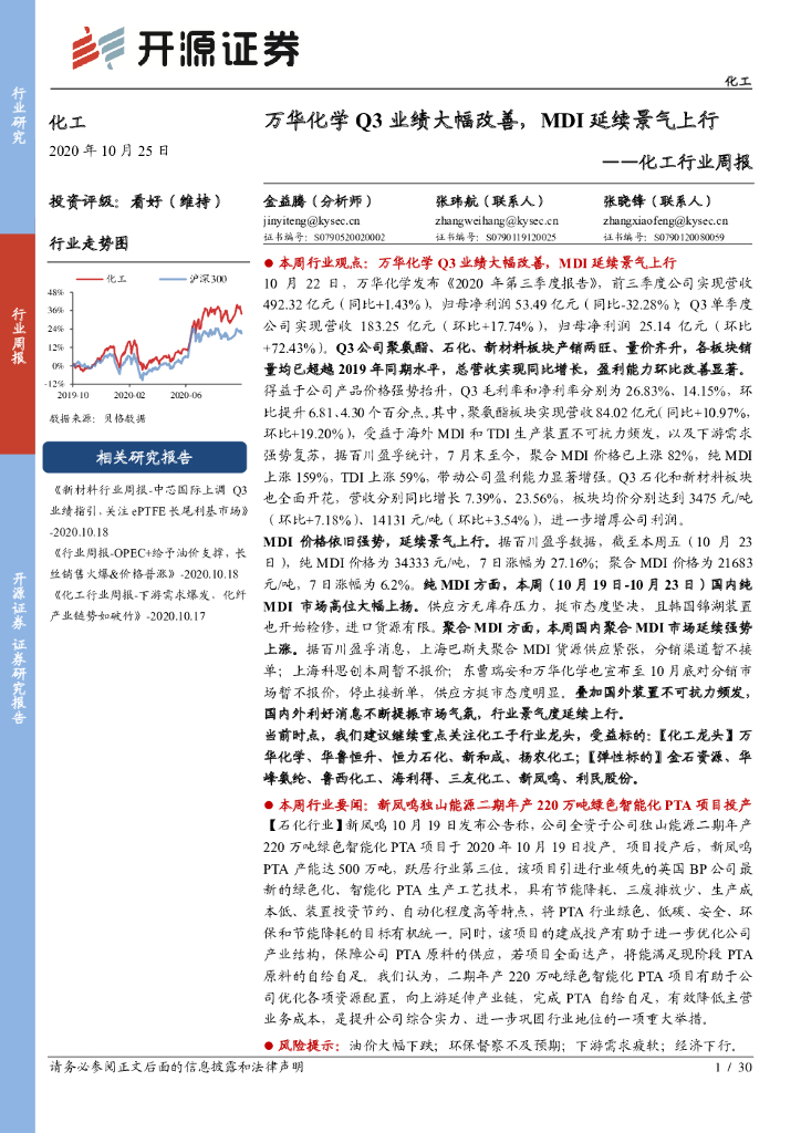 开源证券:化工行业周报:万华化学Q3业绩大幅改善,MDI延续景气上行.pdf