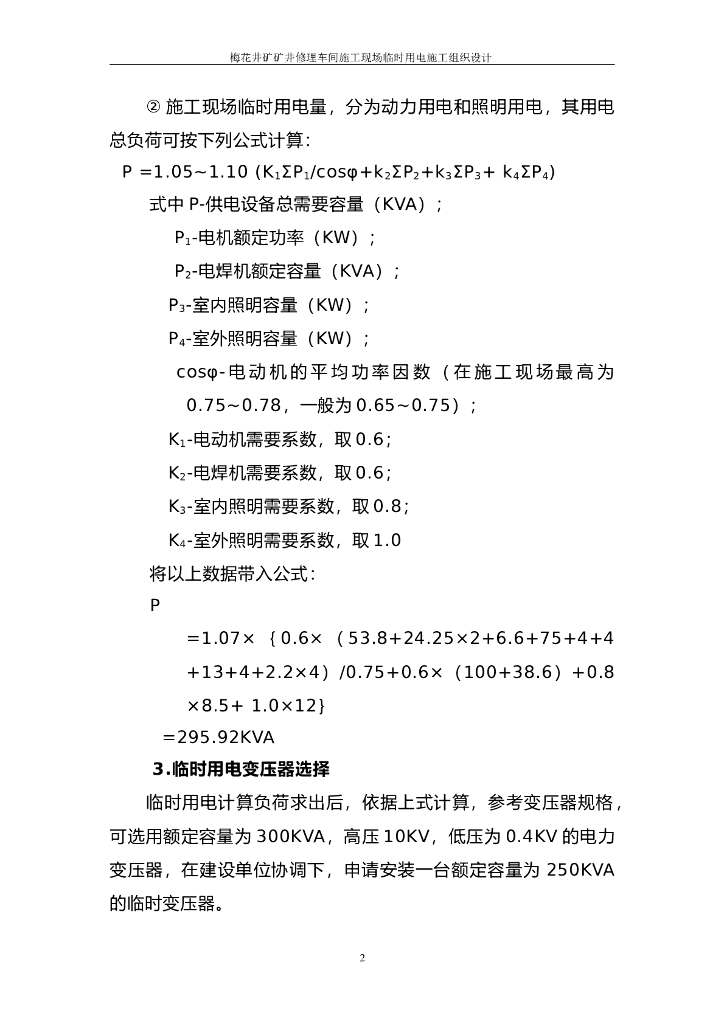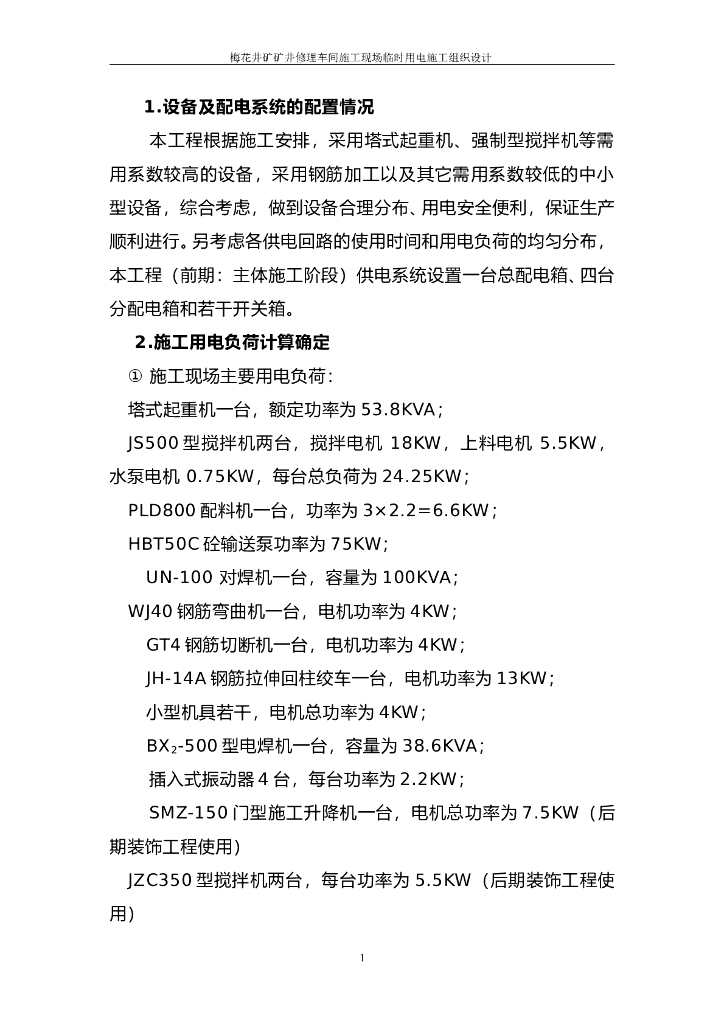 矿井修理车间施工现场临时用电施工组织设计方案.doc