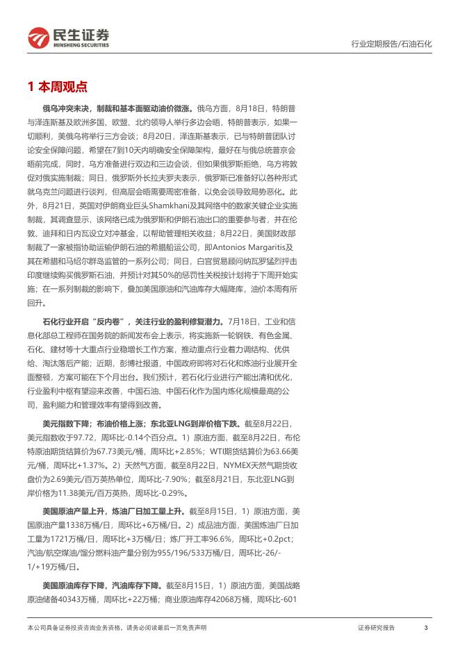 民生证券:石化周报:俄乌冲突未决,制裁和基本面驱动油价微涨.pdf