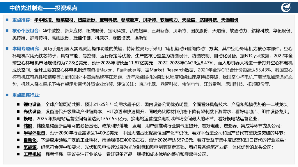 中航证券:先进制造行业周报:空心杯电机:人形机器人灵巧手赋予行业新增量,国产化机会正在孕育.pdf