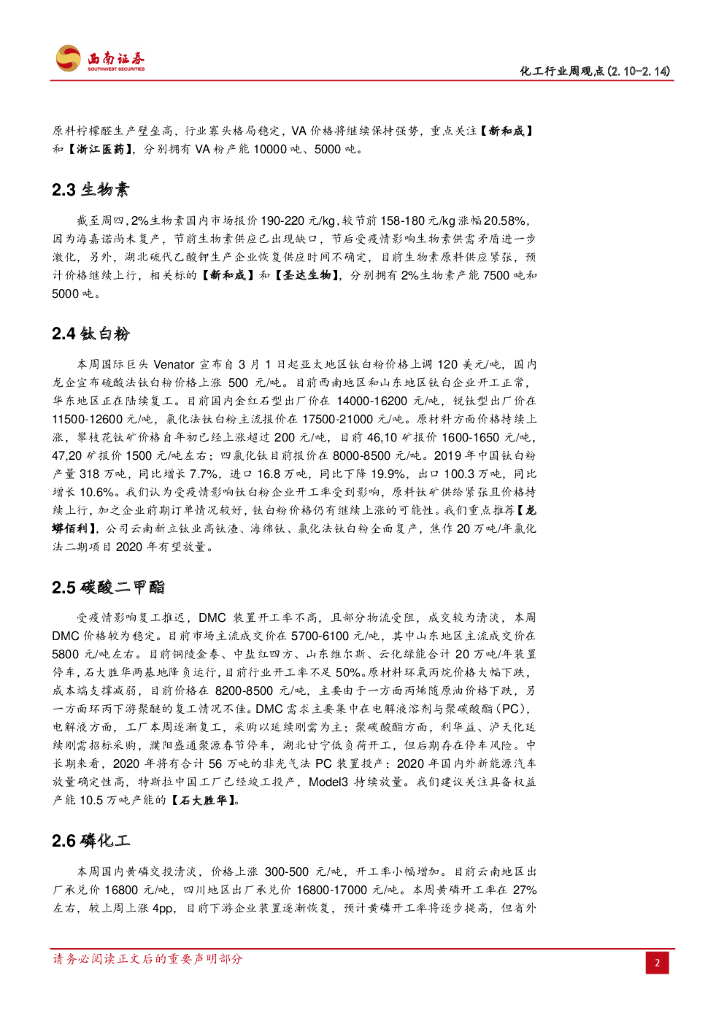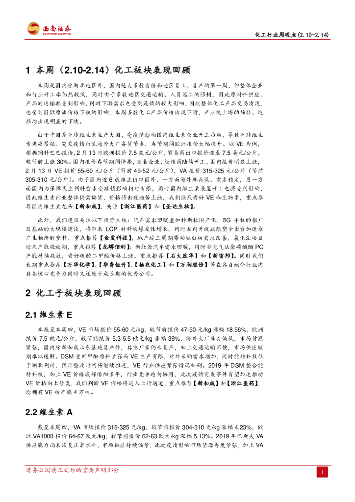 西南证券:化工行业周观点:海外维生素价格整体大涨,看好VE、生物素价格趋势上涨.pdf