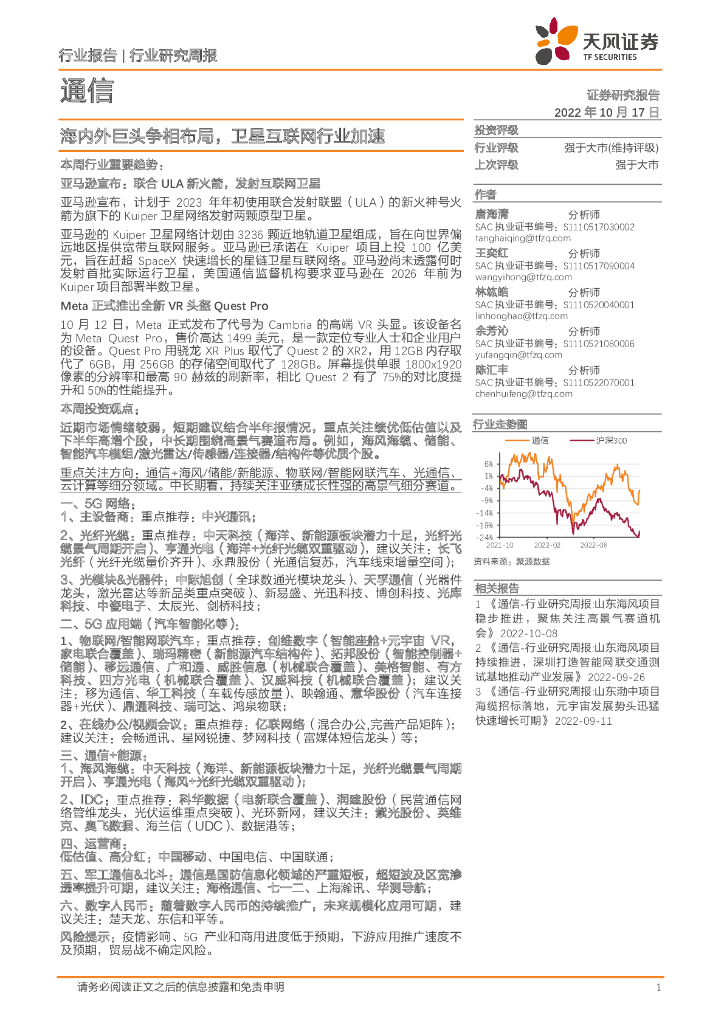 天风证券:通信行业研究周报:海内外巨头争相布局,卫星互联网行业加速.pdf