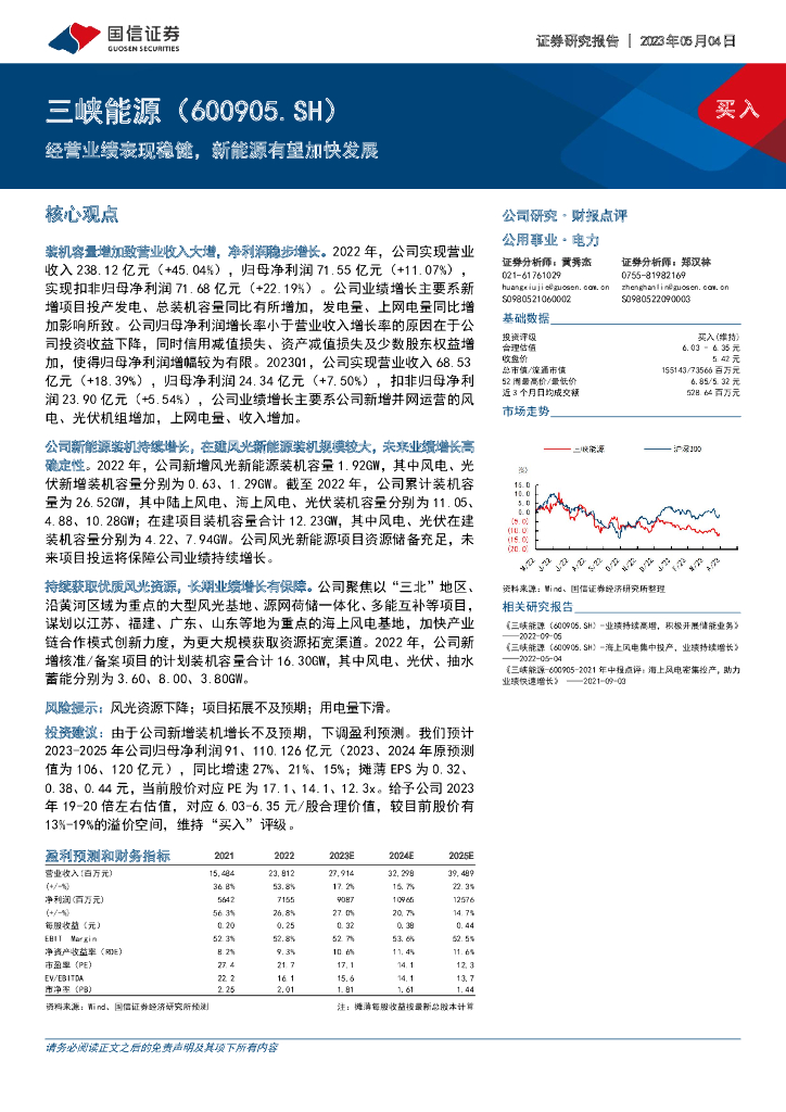 国信证券:三峡能源(600905)-经营业绩表现稳健,新能源有望加快发展.pdf