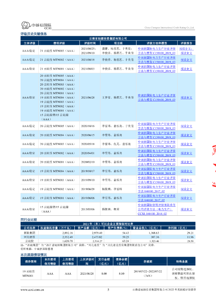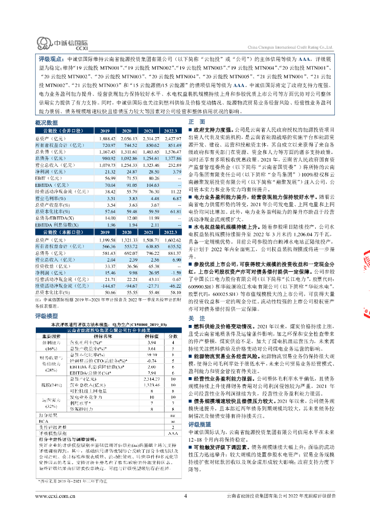 中诚信:云南省能源投资集团有限公司2022年度跟踪评级报告.pdf