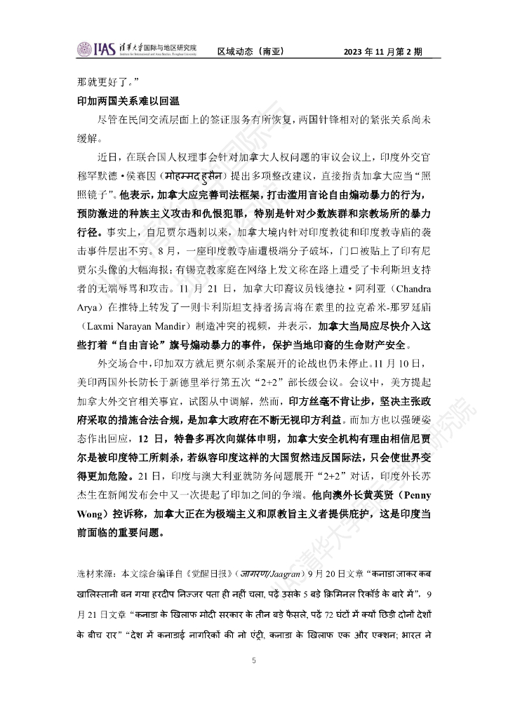 清华大学国际与地区研究院:南亚地区《区域动态》2023年11月第2期.pdf