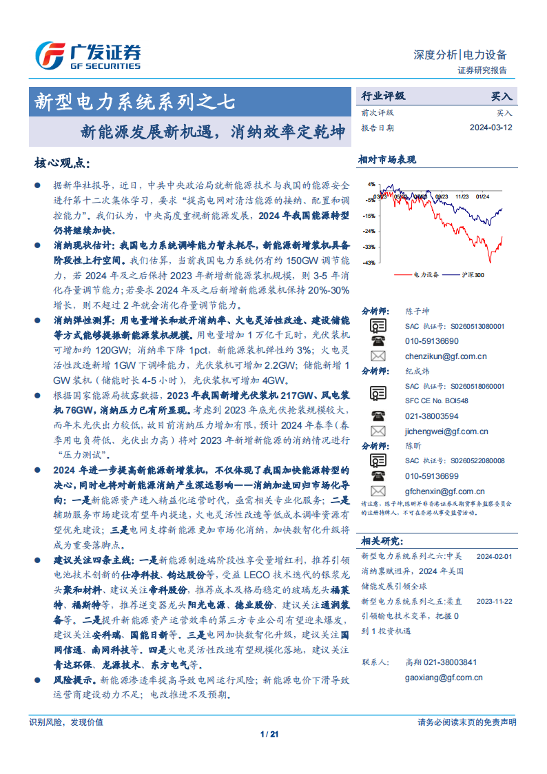 广发证券:新型电力系统系列之七:新能源发展新机遇,消纳效率定乾坤.pdf