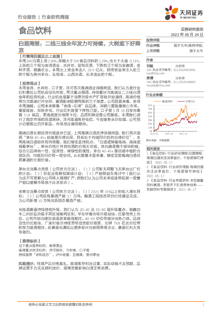 天风证券:食品饮料:白酒周报:二线三线全年发力可持续,大树底下好乘凉.pdf