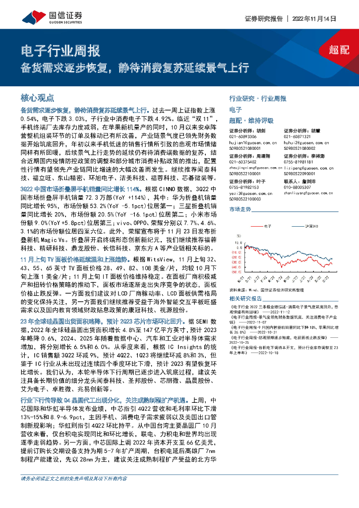 国信证券:电子行业周报:备货需求逐步恢复,静待消费复苏延续景气上行.pdf