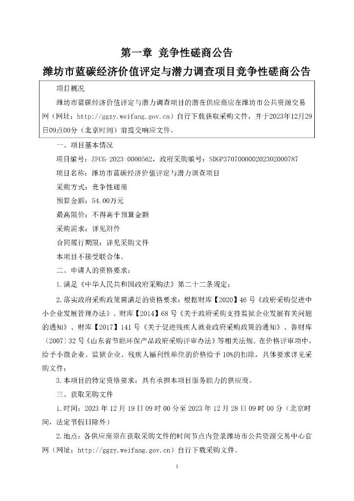 山东省潍坊市蓝碳经济价值评定与潜力调查项目.pdf