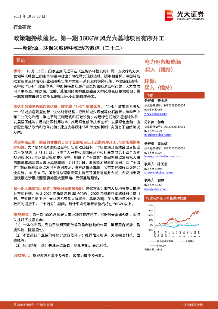 光大证券:新能源、环保领域碳中和动态追踪(三十二):政策端持续催化,第一期100GW风光大基地项目有序开工.pdf
