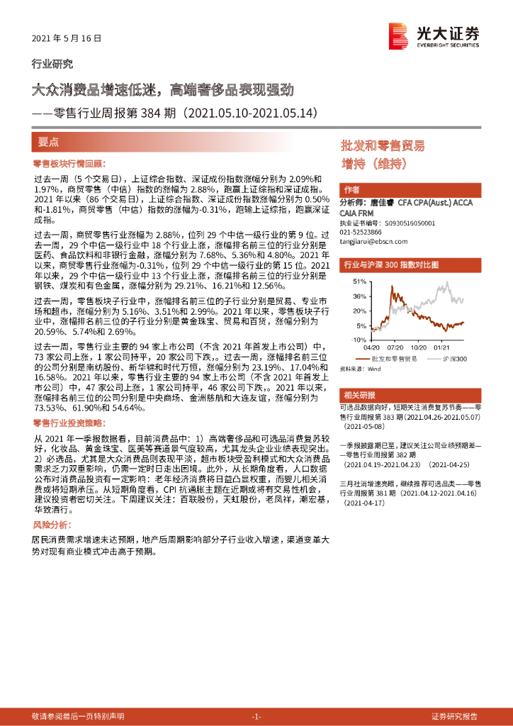 光大证券:零售行业周报第384期:大众消费品增速低迷,高端奢侈品表现强劲.pdf