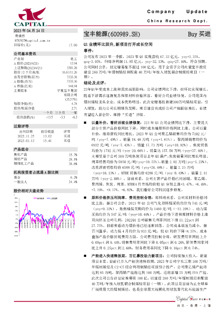 群益证券:宝丰能源(600989)-Q1业绩环比回升,新项目打开成长空间.pdf