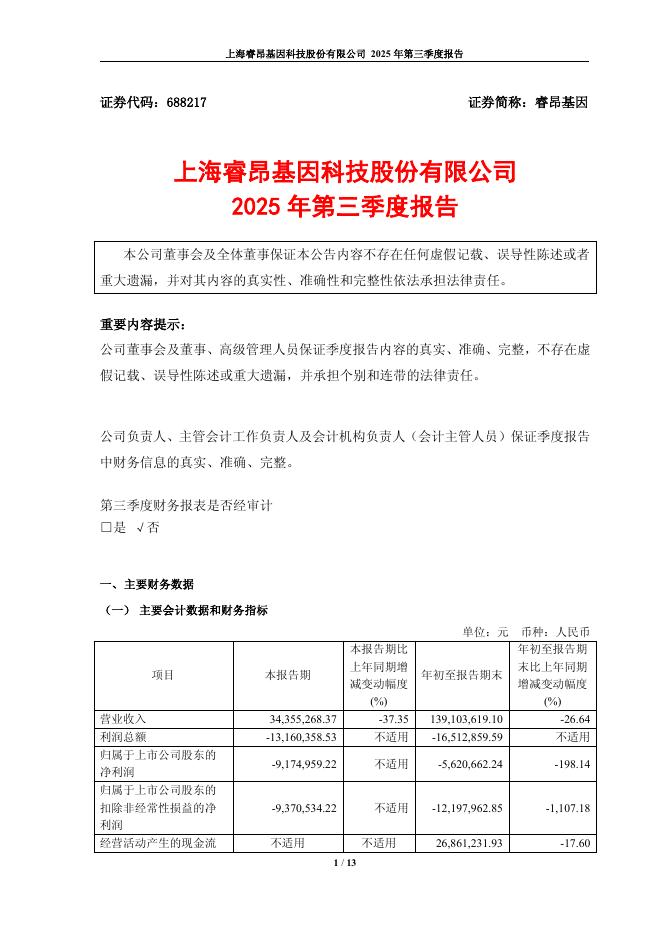 688217-睿昂基因:睿昂基因2025年第三季度报告.pdf
