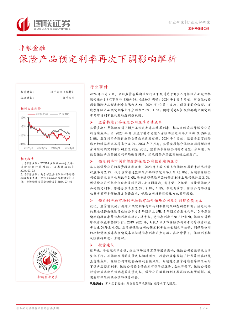 国联证券:非银金融(2149):保险产品预定利率再次下调影响解析.pdf