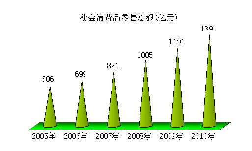 消费品市场稳步增长。全市实现社会消费品零售总额1391.1亿元,比上年增长18.6%。