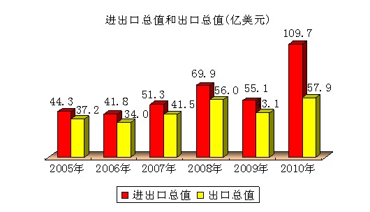 进出口快速增长。据石家庄海关统计,进出口总值首次突破百亿美元大关,全年实现109.7亿美元,比上年增长99.3%。其中进口总值实现51.8亿美元,增长3.3倍;出口总值实现57.9亿美元,增长34.6%。
