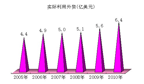 实际利用外资保持增长态势。全市实际利用外资6.4亿美元,比上年增长12.9%,其中外商直接投资2.4亿美元。年内新批准设立外商投资企业32个,新增合同总金额6.4亿美元,合同外资额2.4亿美元。
